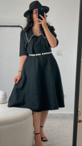وجود کمربند مرواریدی ظریف زیبایی و جلوه‌ی زنانه‌ی این ست را دوچندان کرده و آن را مناسب مجالس رسمی، مهمانی‌ها و استایل‌های خاص می‌سازد.