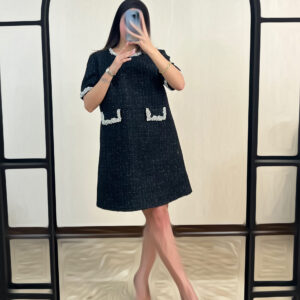 پیراهن ژاکارد شیک با آستین نیمه و نگین‌دوزی ظریف، همراه با برش خاص پهلو که تن‌خور فوق‌العاده‌ای ایجاد کرده است. انتخابی جذاب و متفاوت برای مجالس.