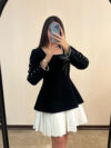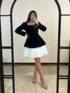 این پیراهن سفید و مشکی، نمونهای از تلفیق ظرافت و کیفیت است.